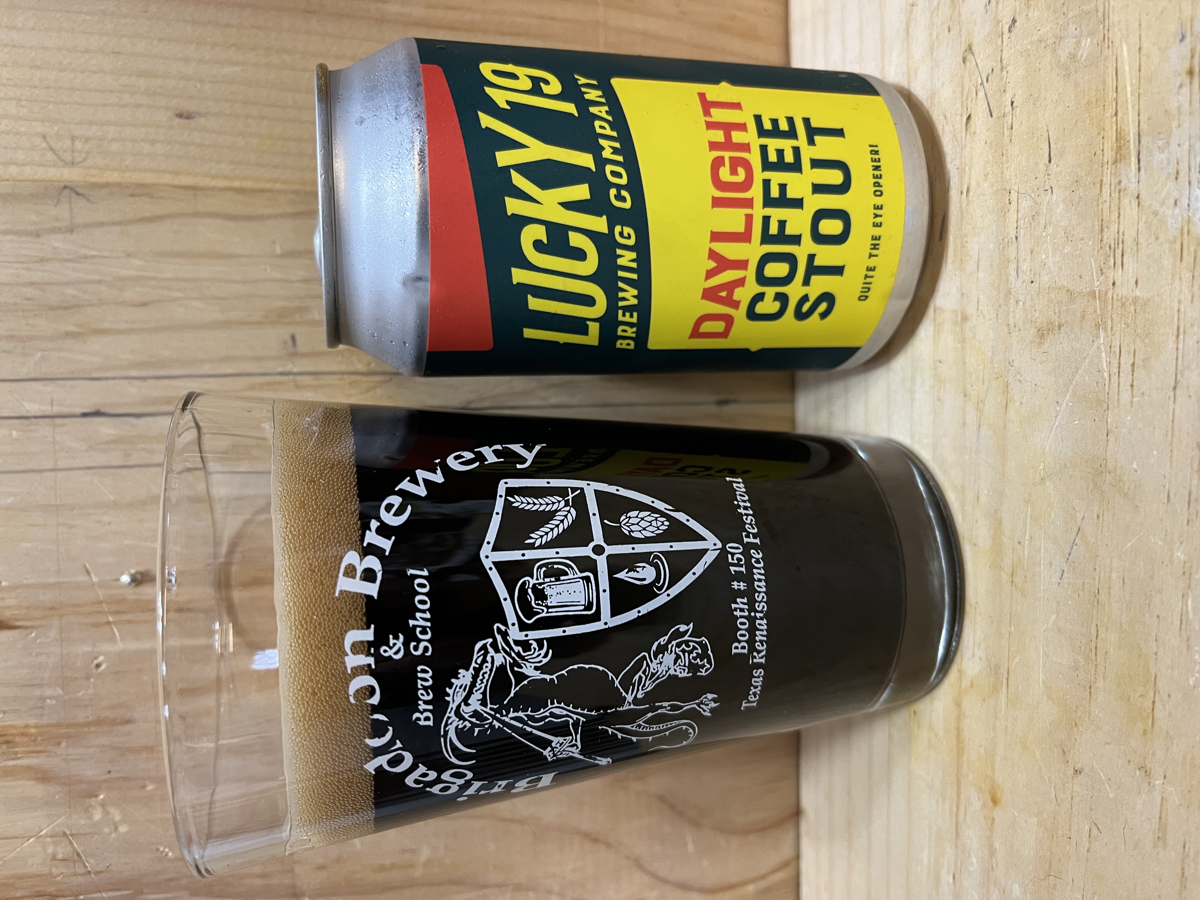 Huntsville, TX | The beer pours with a nice head and the carbonation stays around. Then you can smell the coffee. As youi taste you are met with a nutty malty flavor followed by a nice cold coffee flavor which lingers after you swallow. This is just what they say it is, it is a Coffee Stout!!! There are notes of carmel and roasted barely. This is brewed with two-row, roasted and chocolate barley anlong wiht a nice cold-brewed coffee. Great on a cold afternoon or perhaps dare I say it, with Sunday Brunch! This is one for Louie Belina! |