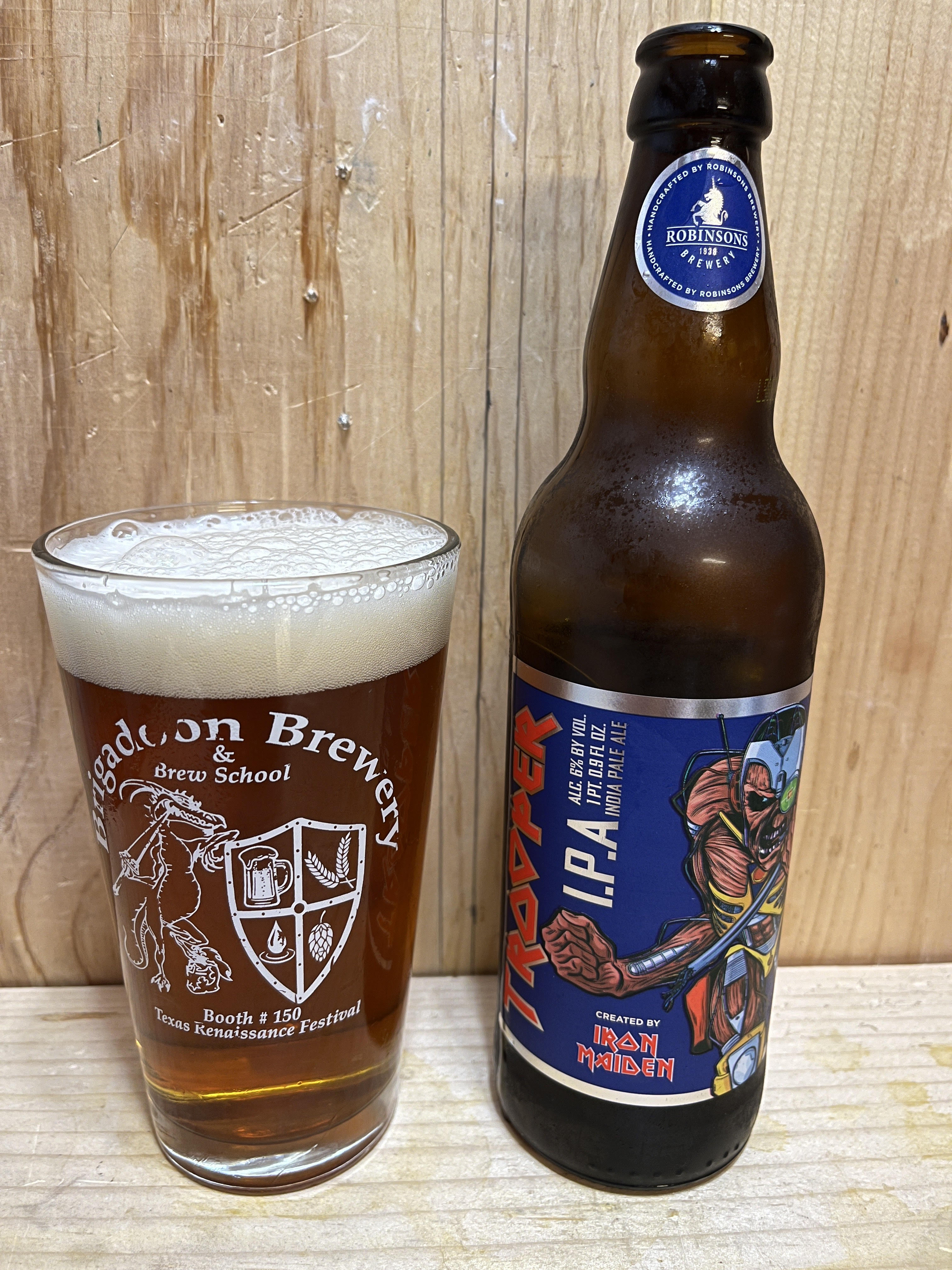 Stockport, Greater Manchester, England | The beer pours with nice head which maintains throughout the session. It has an interesting British ESB flavor, being malty with carmel notes which goes to a more fruity hop finish. What they have done is taken the original Trooper and bumped up the alcohol from 4% to 6% and pushed the hops up to make an more "American style" IPA. Its made with british malt and American Bobec, Golding and Cascade hops. Over all its not bad but I think I prefer the original Trooper. It should be noted that the Trooper series is made by Robinsons Brewery which has been family owned and opperated since 1838. |